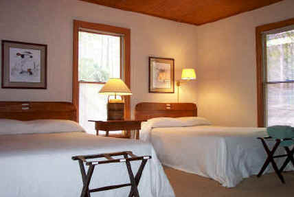has 2 bedrooms, each with 2 queen size beds and a private bath. This lodge is for overnight guests only with no accommodations for larger gatherings.